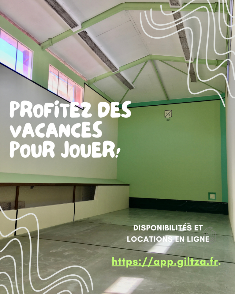 Location possible du trinquet.Consultez nos disponibilités et réservez via l'application Giltza.